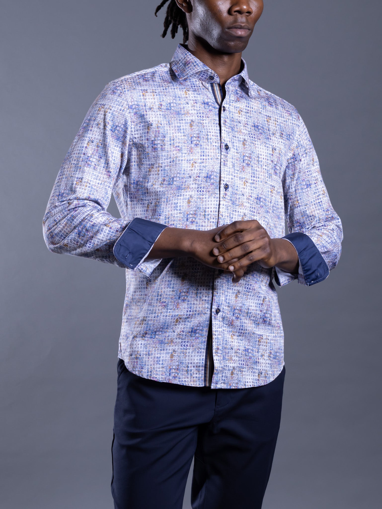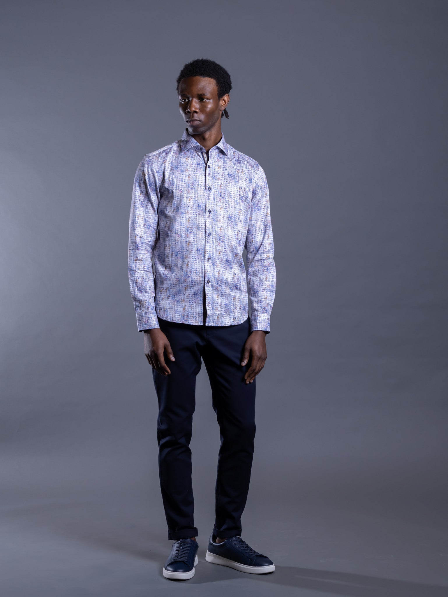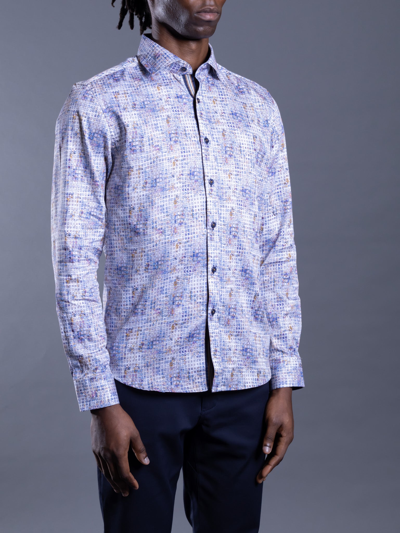 The Paint Grid Sports Shirt blends refined style with everyday comfort. Crafted from 100% Egyptian cotton with a calendry silk finish, it offers a sleek, breathable feel. Its modern fit ensures a tailored yet comfortable drape, while the contemporary grid pattern adds versatility. Perfect for casual or semi-formal wear, pair it with chinos or layer it under a blazer for effortless sophistication.