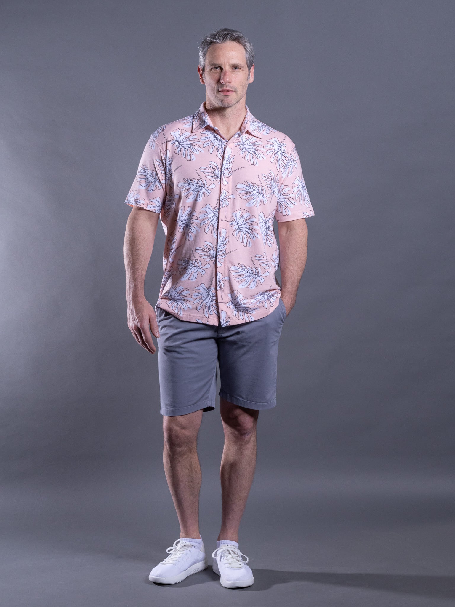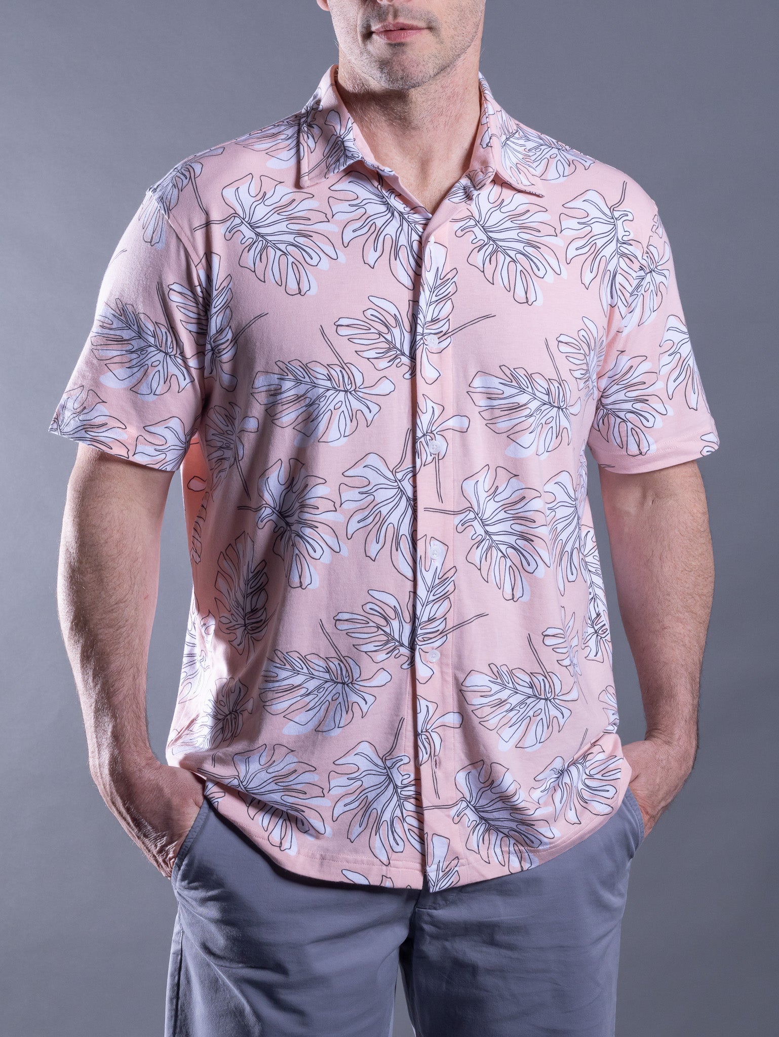 Designed for effortless style and comfort, this modern-fit shirt features a soft, breathable blend of 48% cotton, 48% modal, and 4% spandex. Its lightweight fabric offers stretch for easy movement, while a relaxed tropical print adds a fresh touch. Perfect for casual outings, vacations, or weekends, it pairs seamlessly with chinos, shorts, or denim. Breathable, easy-care, and versatile, it’s a go-to for laid-back yet polished style