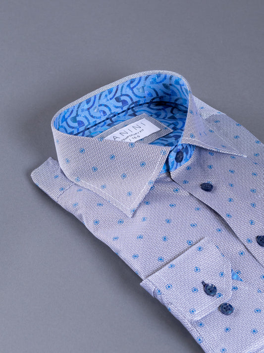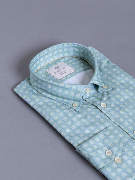 Timeless and versatile, this 100% cotton sports shirt offers a soft, breathable feel with a relaxed yet structured fit. The refreshing cyan hue and subtle pattern add sophistication, making it perfect for both casual and semi-formal wear. Durable and comfortable, it pairs effortlessly with tailored trousers or jeans for a polished look.